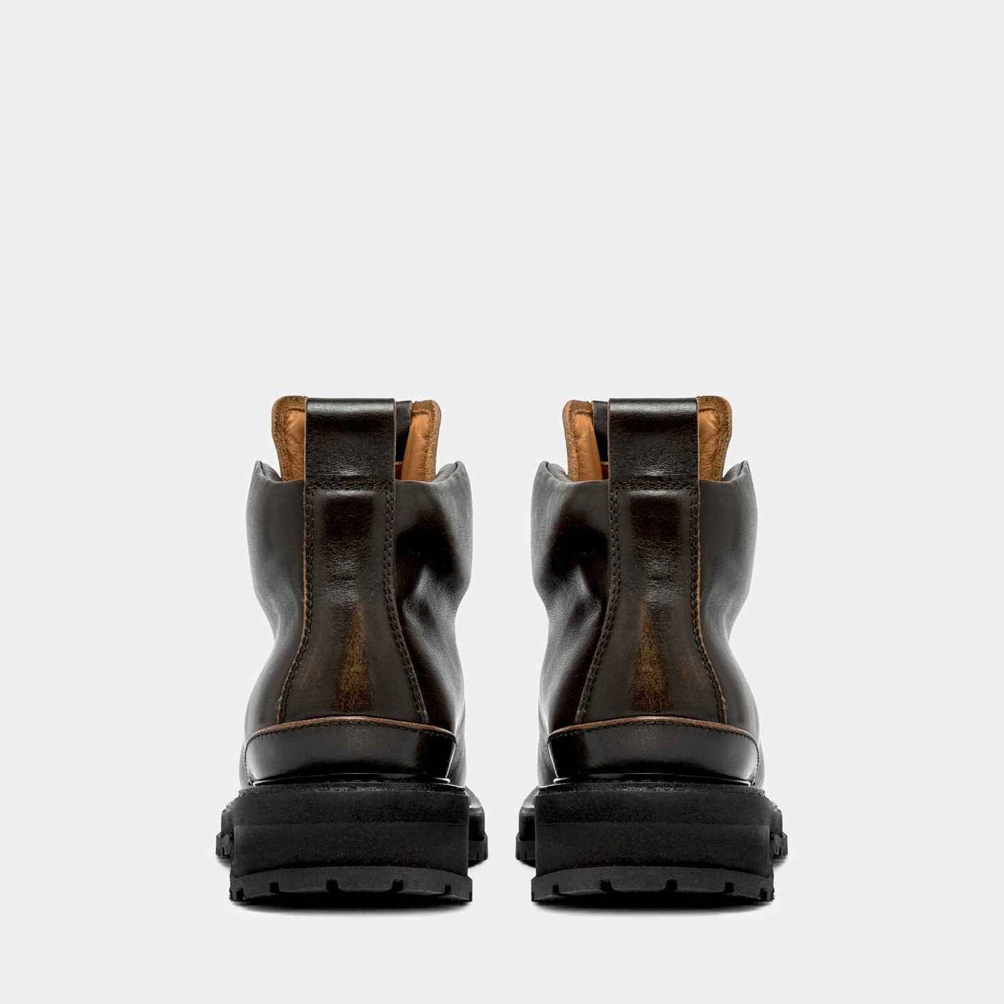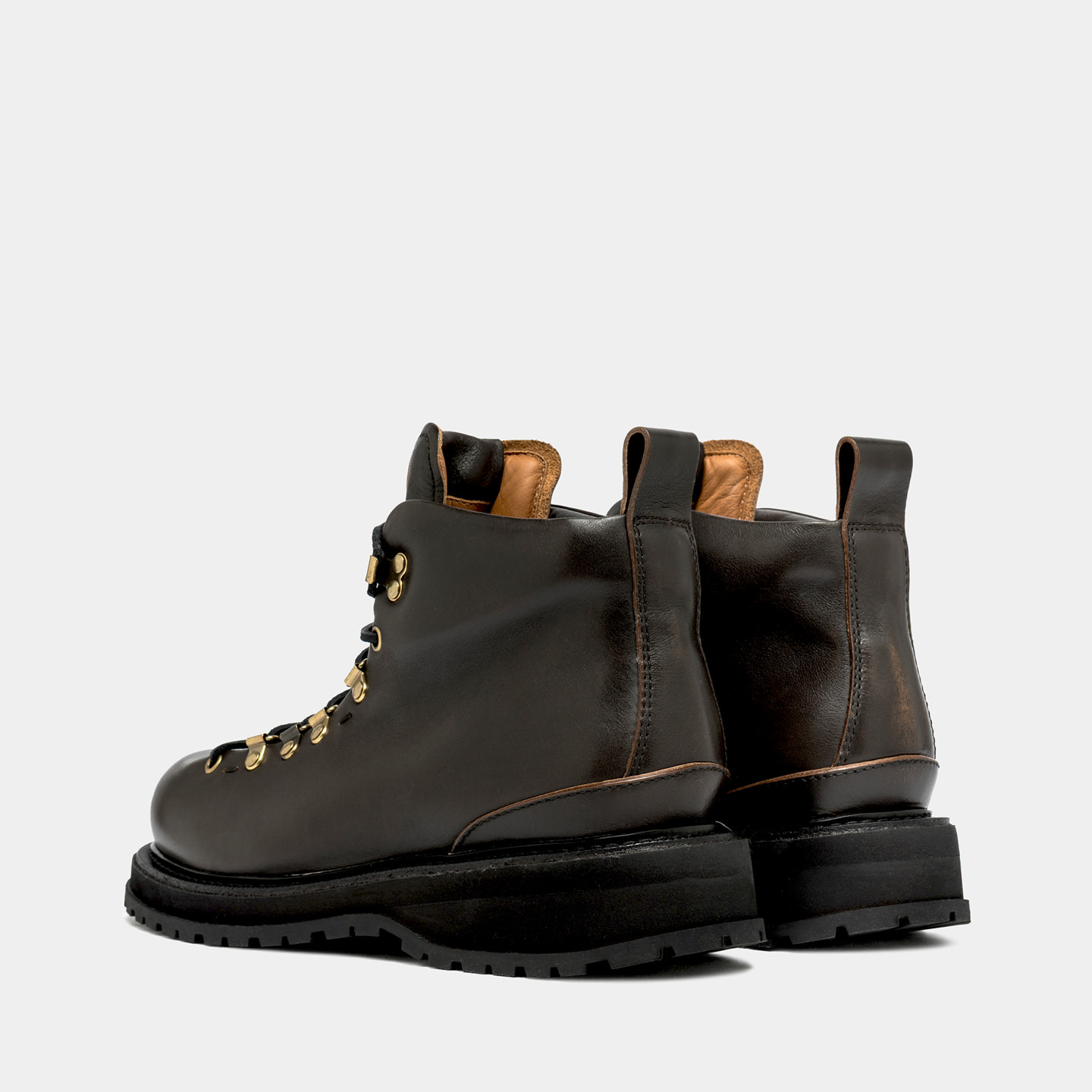 Made in Italy Alpi Pedula-style ankle boots in walnuts aged leather.