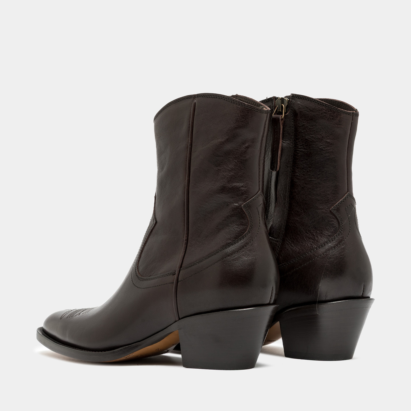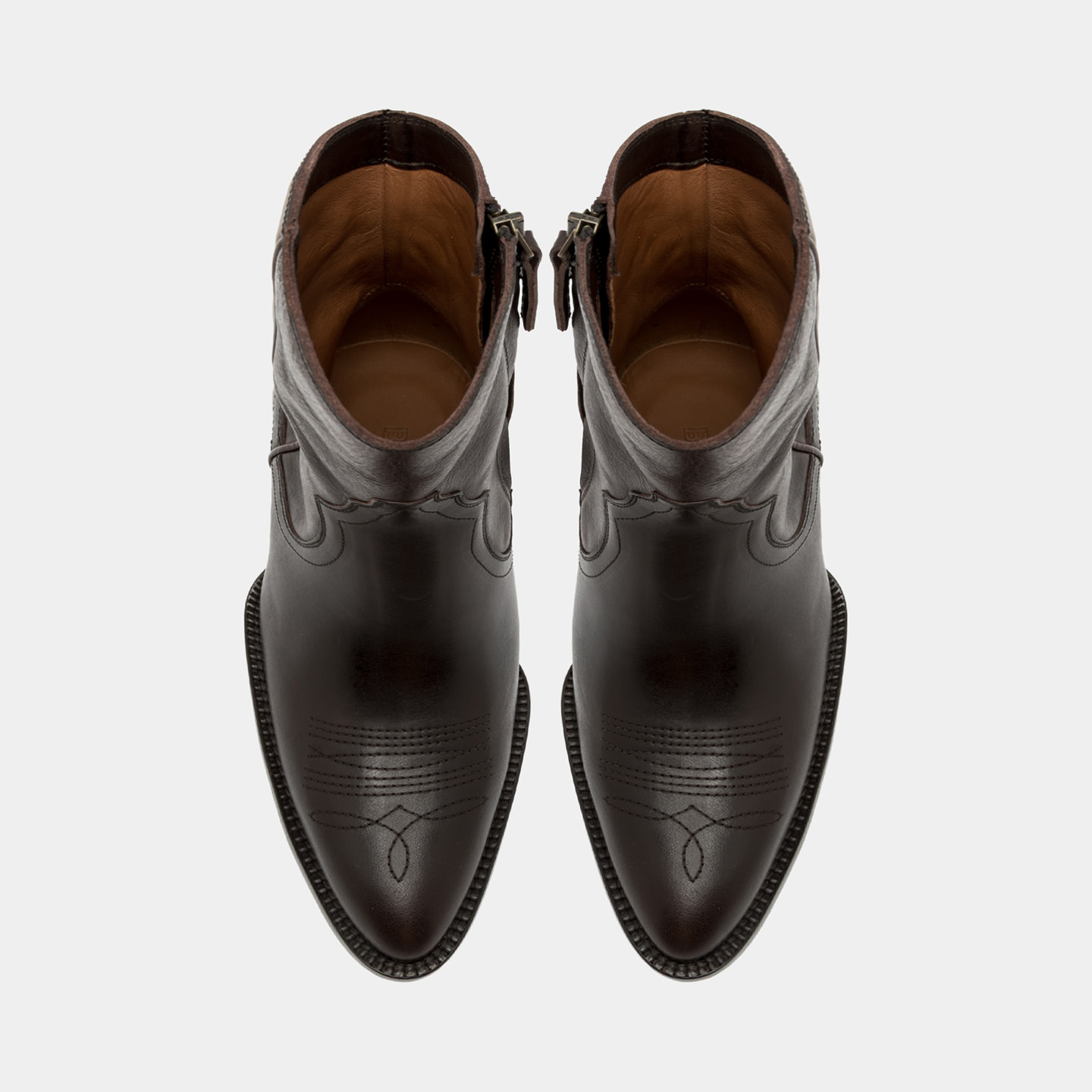 Crafted from vegetable-tanned calfskin leather, it features a soft upper defined by original Western-inspired stitching, adding a distinctive detail while maintaining a balanced aesthetic. Over time, the leather naturally evolves, developing richer tones and character.