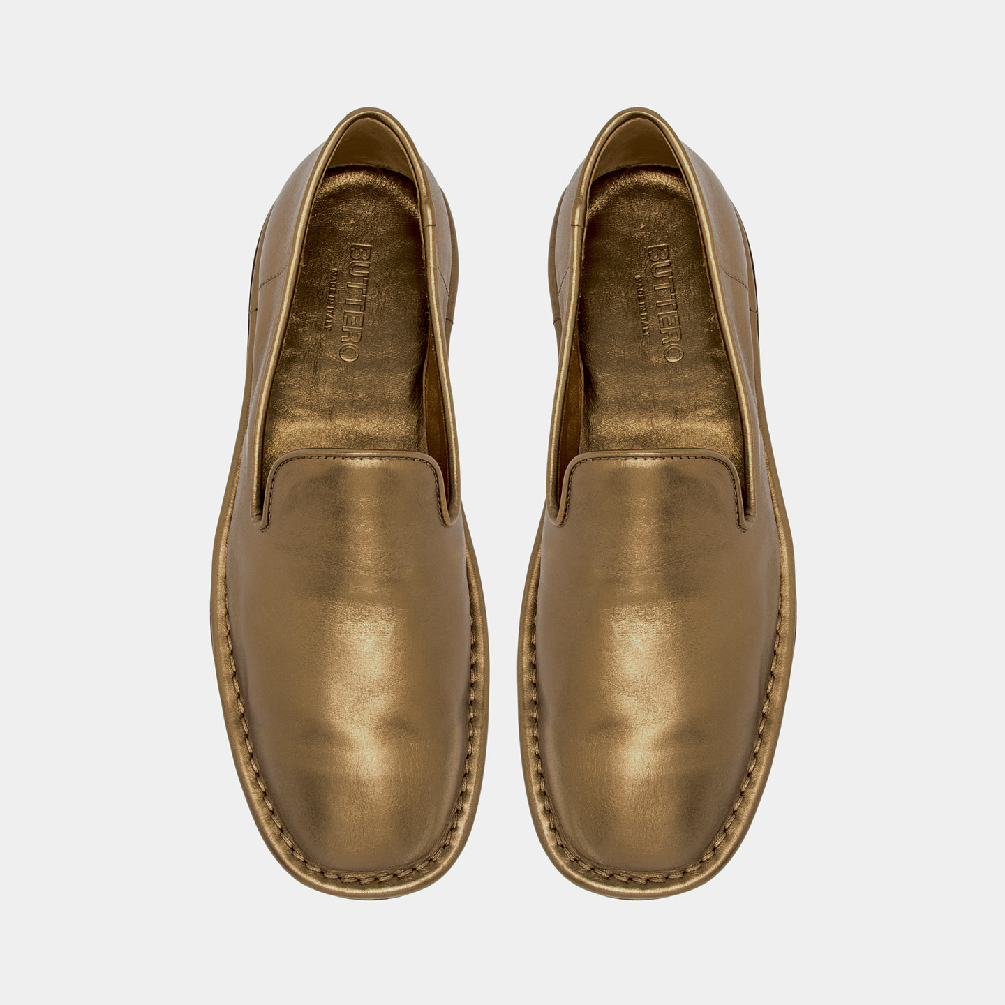 ERCOLE SLIPPERS IN GOLD TONE LAMINATED LEATHER