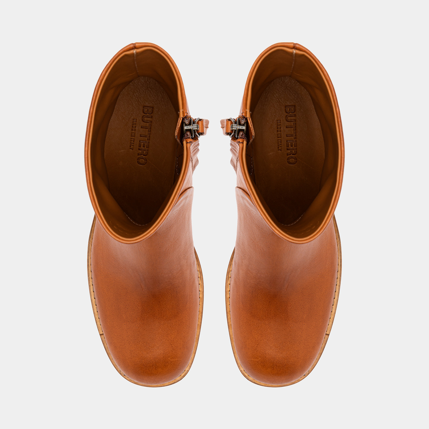 BUTTERO: ANNIE BOOTS IN AGED WALNUT BROWN NATURAL LEATHER