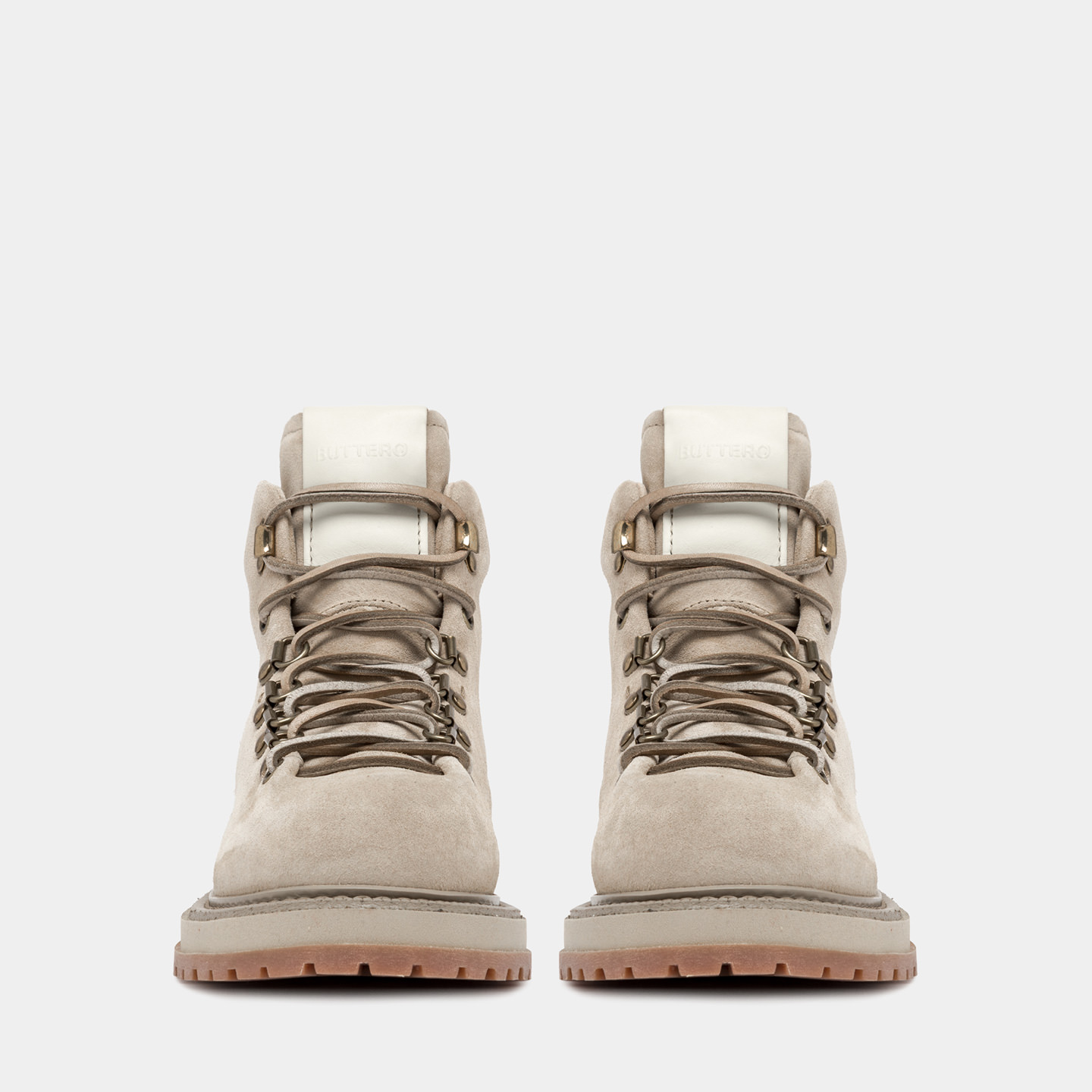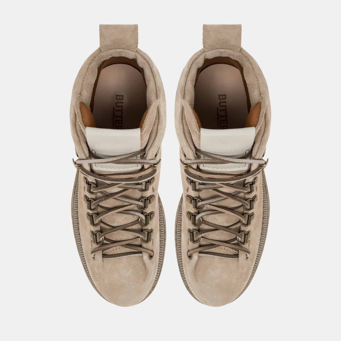 Chaussures modèle Alpi, fabriquées en Italie, en daim beige.