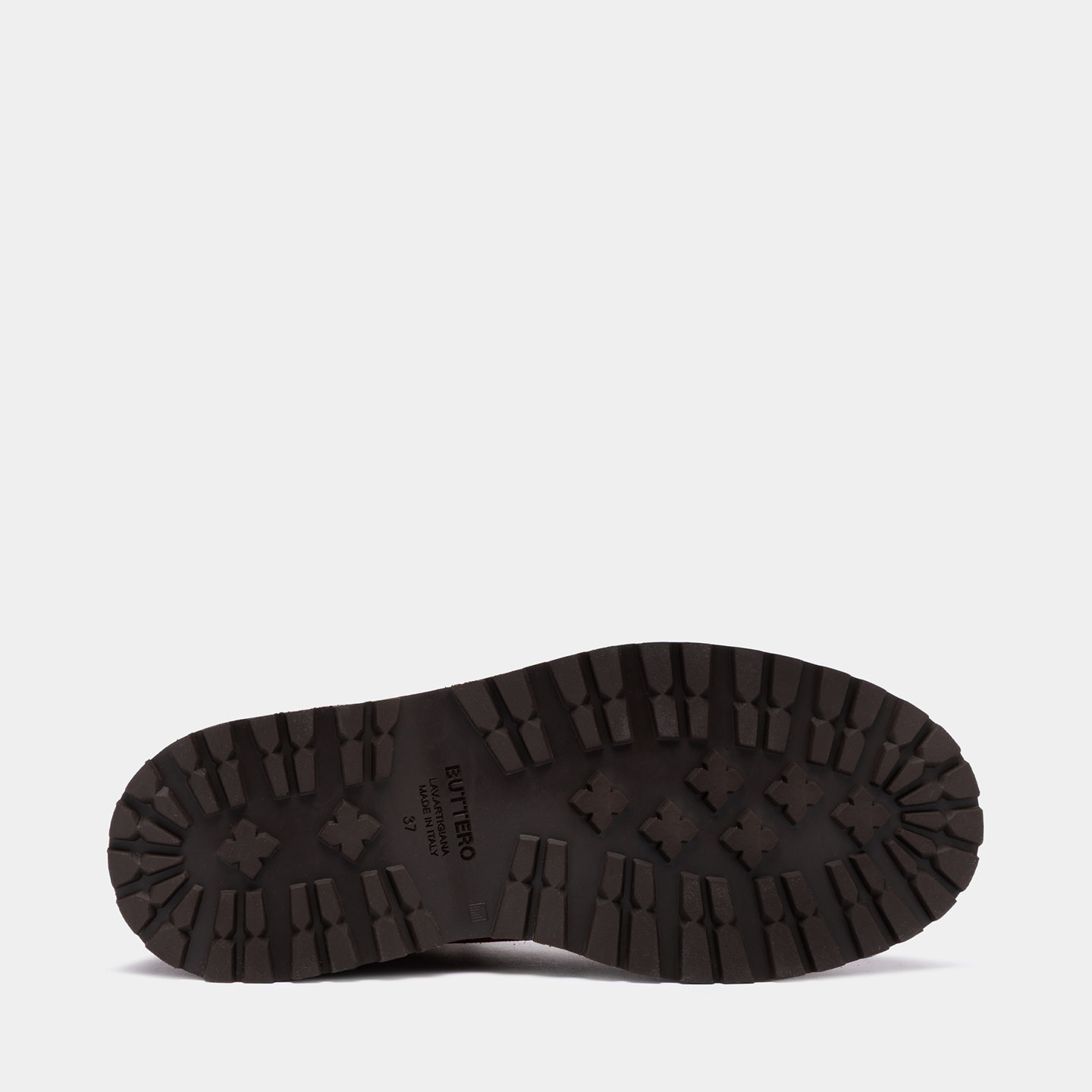 Étiquette en cuir cousue sur la languette avec logo Buttero en relief. Lacets ronds en coton multicolore. Crochets en métal en forme de cloche. Collier rembourré. Doublure en cuir. Semelle en cuir amovible.  Garde-boue en cuir, semelle en micro, talon en caoutchouc avec fond de char.