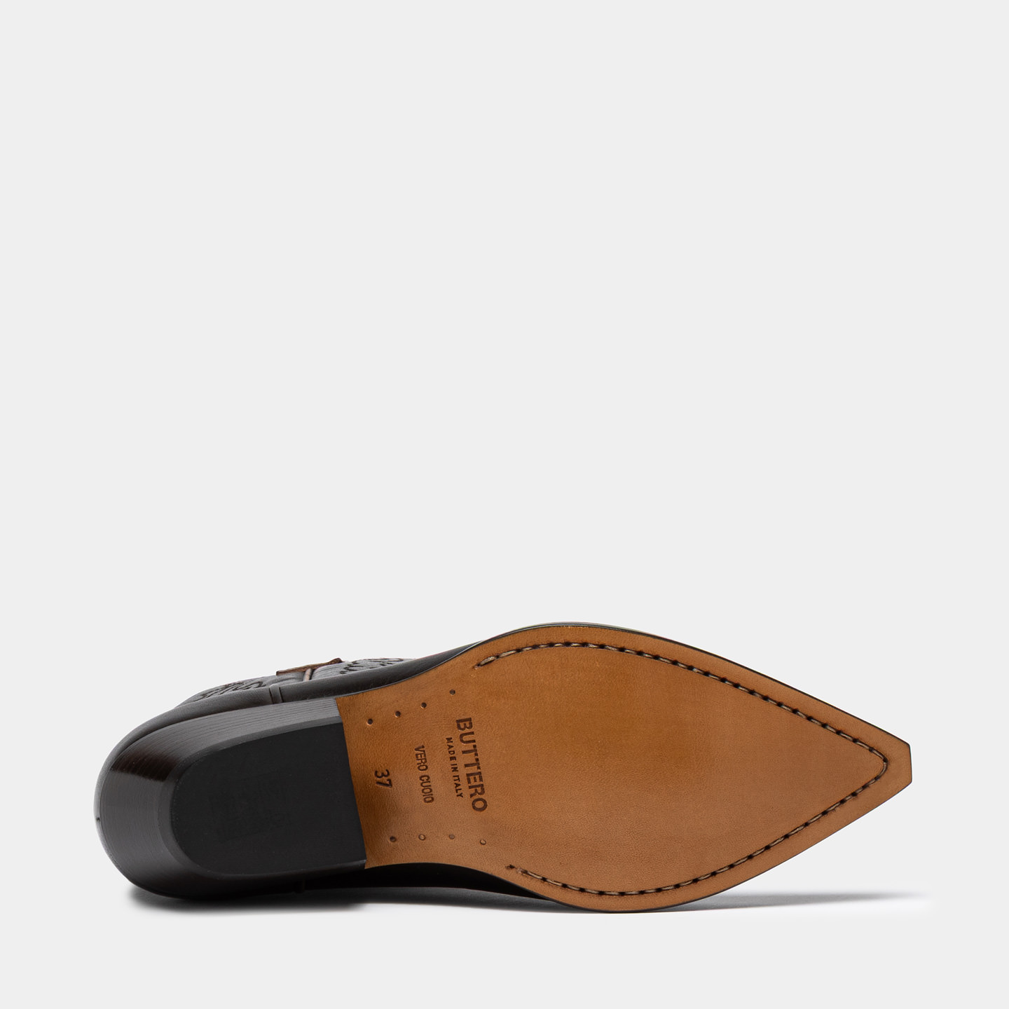 La suola è in vero cuoio, realizzata con costruzione Blake. Il tacco cubano inclinato è completato da un inserto in gomma, per garantire comfort duraturo e maggiore resistenza nel tempo.