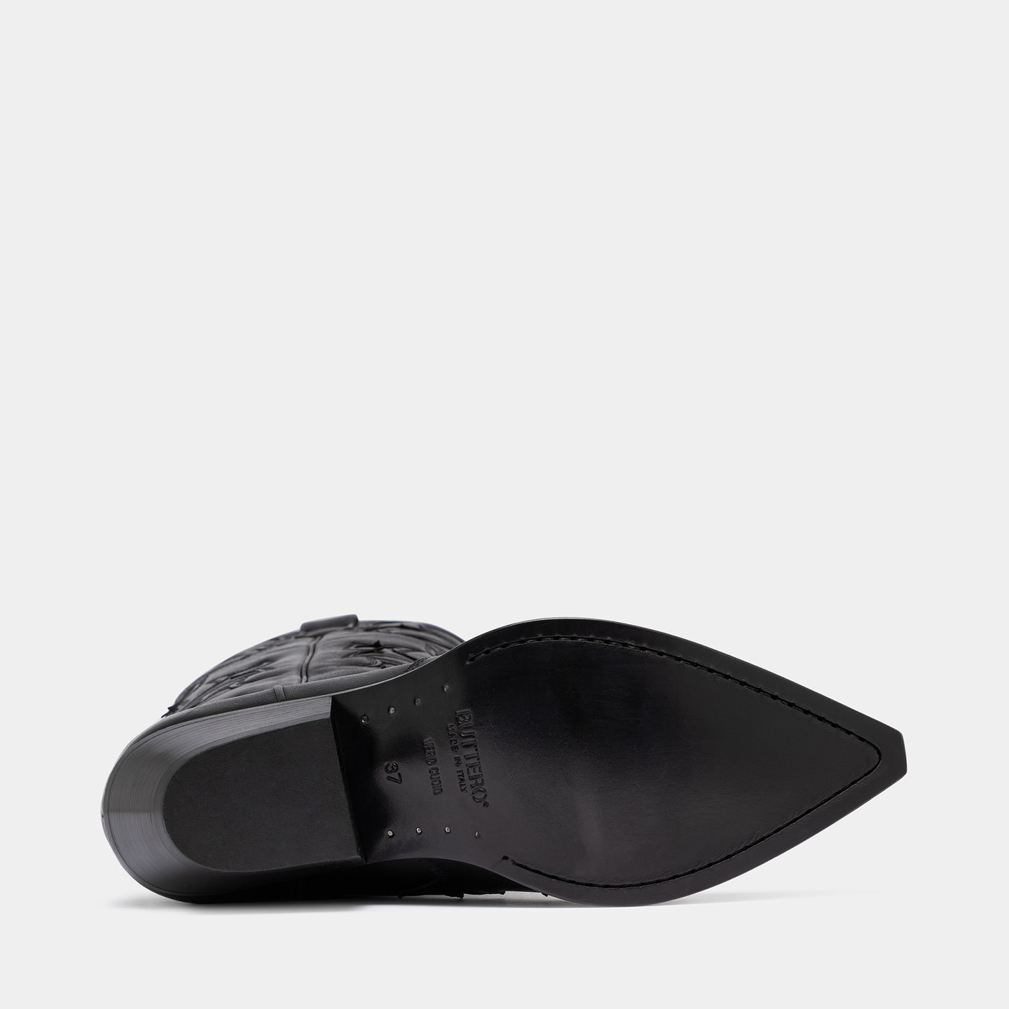 Stivale Made in Italy modello Flee di ispirazione Western in pelle di vitello colore nero.